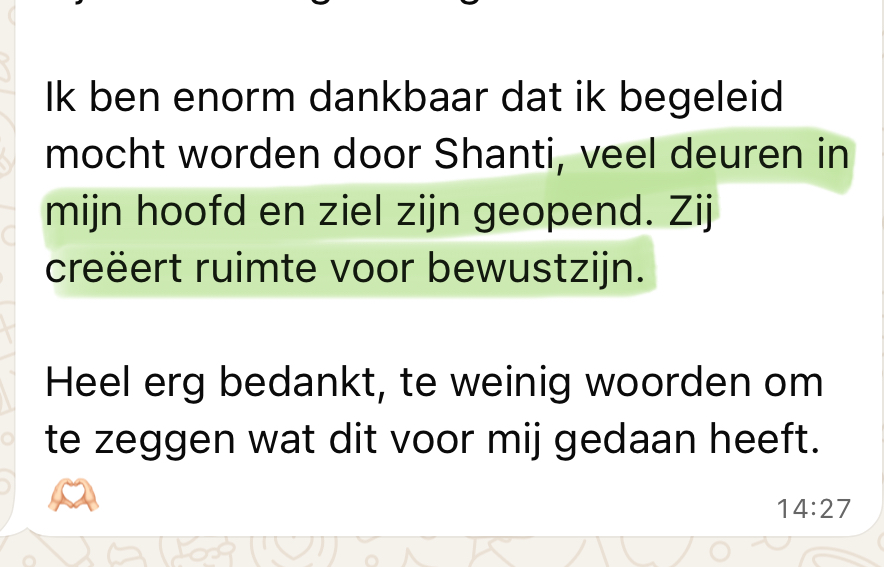 Na het traject heb je alle tools om zelfstandig door te gaan. Het traject is zo opgebouwd dat je een basis legt voor groei en dat je daarop door kan pakken. Zowel spiritueel als financieel.